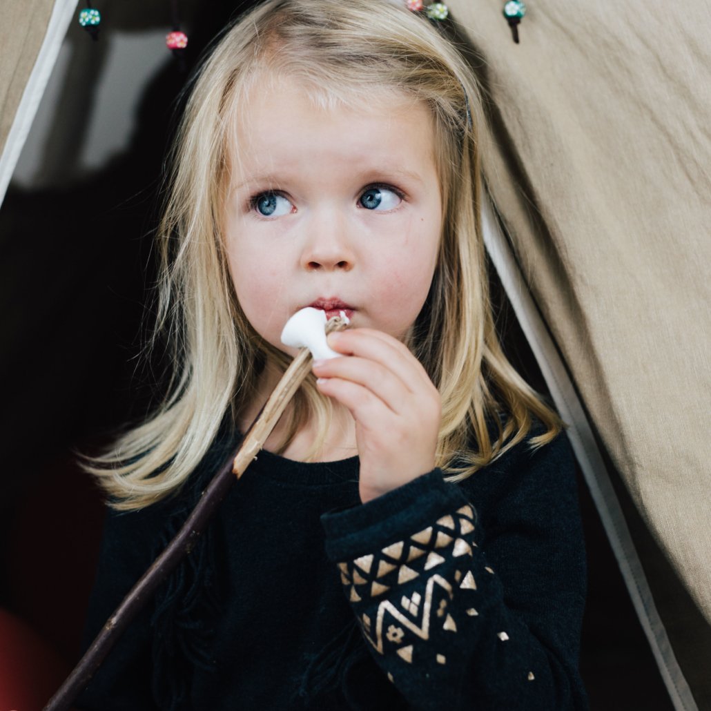 Egal ob im Park mit Feuerstelle oder im Garten – ein Lagerfeuer bringt gewaltig Abenteuer. Nach einer wilden Schnitzeljagd ist es an der Zeit den Hunger der Kinder zu stillen. Auch hier könnt Ihr die Kids von Anfang an mit einbinden. Die Stöcke, die die Kinder während der Schnitzeljagd schon eingesammelt haben, kommen jetzt beim Grillen zum Einsatz. Es gibt für Kinder doch nichts Aufregenderes, als sich ihr eigenes Stockbrot selbst über dem offenen Feuer zu grillen. Am besten entfernt Ihr an einer Seite der Stöcke etwas die Rinde und schnitzt mit einem Messer das Ende etwas spitz. Dann habt Ihr eine saubere Stelle um den Teig um den Stock zu wickeln oder etwas aufzuspießen. Der Teig für das Stockbrot lässt sich superleicht und schnell zu Hause vorbereiten und schmeckt wirklich allen. Zum Abschluss passen Marshmallows natürlich hervorragend zu jeder Outdoor Party. Und während Ihr gemeinsam am Grillen seid, ist es Zeit für spannende oder auch lustige Geschichten am Lagerfeuer.