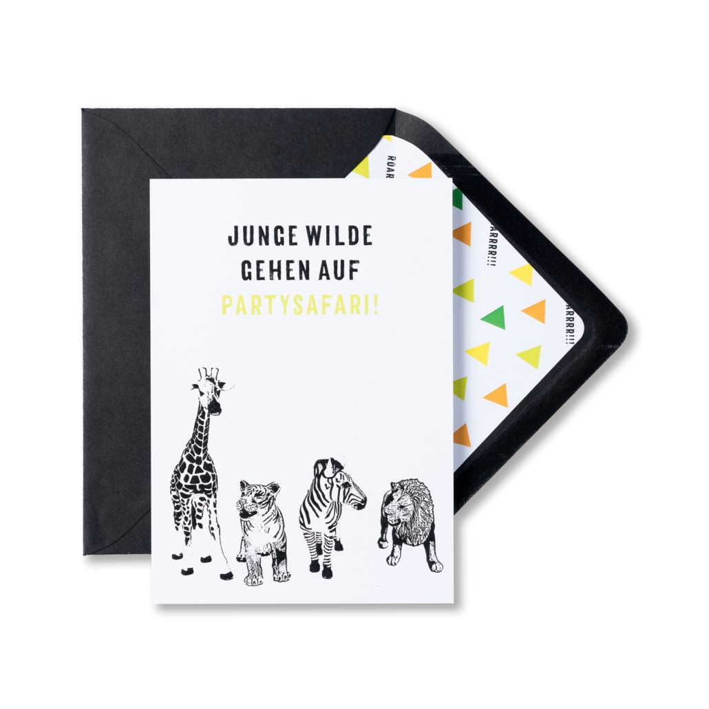Los geht das Abenteuer für die Kinder schon beim Aussuchen der Einladungskarten. Für einen Kindergeburtstag mit dem Motto Abenteuer können unterschiedliche Motive super passen. Bei uns im Shop findet Ihr z.B. Einladungskarten mit wilden Tieren oder „Let´s go wild“ Karten mit wild fliegenden Pfeilen und Federn. Je nach Alter des Geburtstagskindes, bietet es sich an, die Karten mit den wichtigsten Daten individuell bedrucken zu lassen oder Ihr bestellt Karten zum selbst beschriften. Name, Alter und Datum der Party können dann selbst von den Kindern in Ihren Lieblingsfarben eingetragen werden. Nach dem Beschriften und Verteilen der Einladungskarten – kann die wilde Party kommen.
