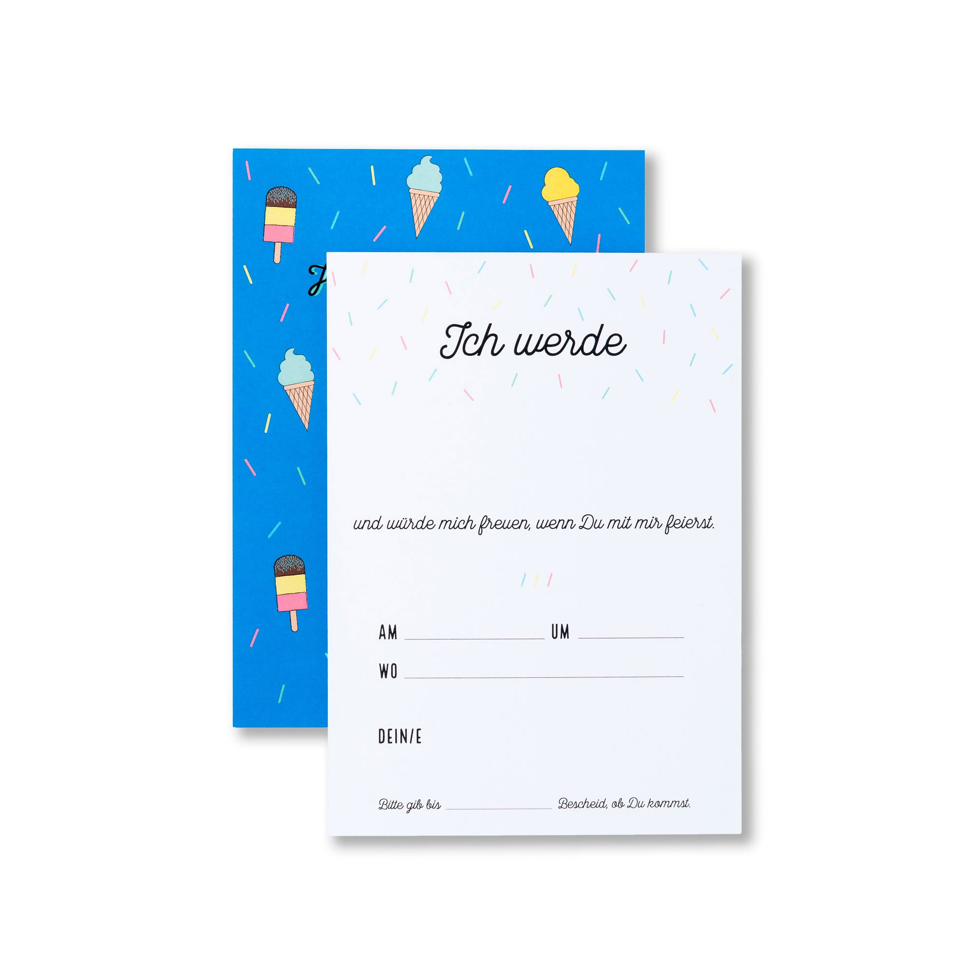 I scream, you scream, we all scream for ice cream. Eis lässt alle Kinderherzen höher schlagen. Mit unseren Ice Cream Einladungskarten kann die Sommer Party kommen.