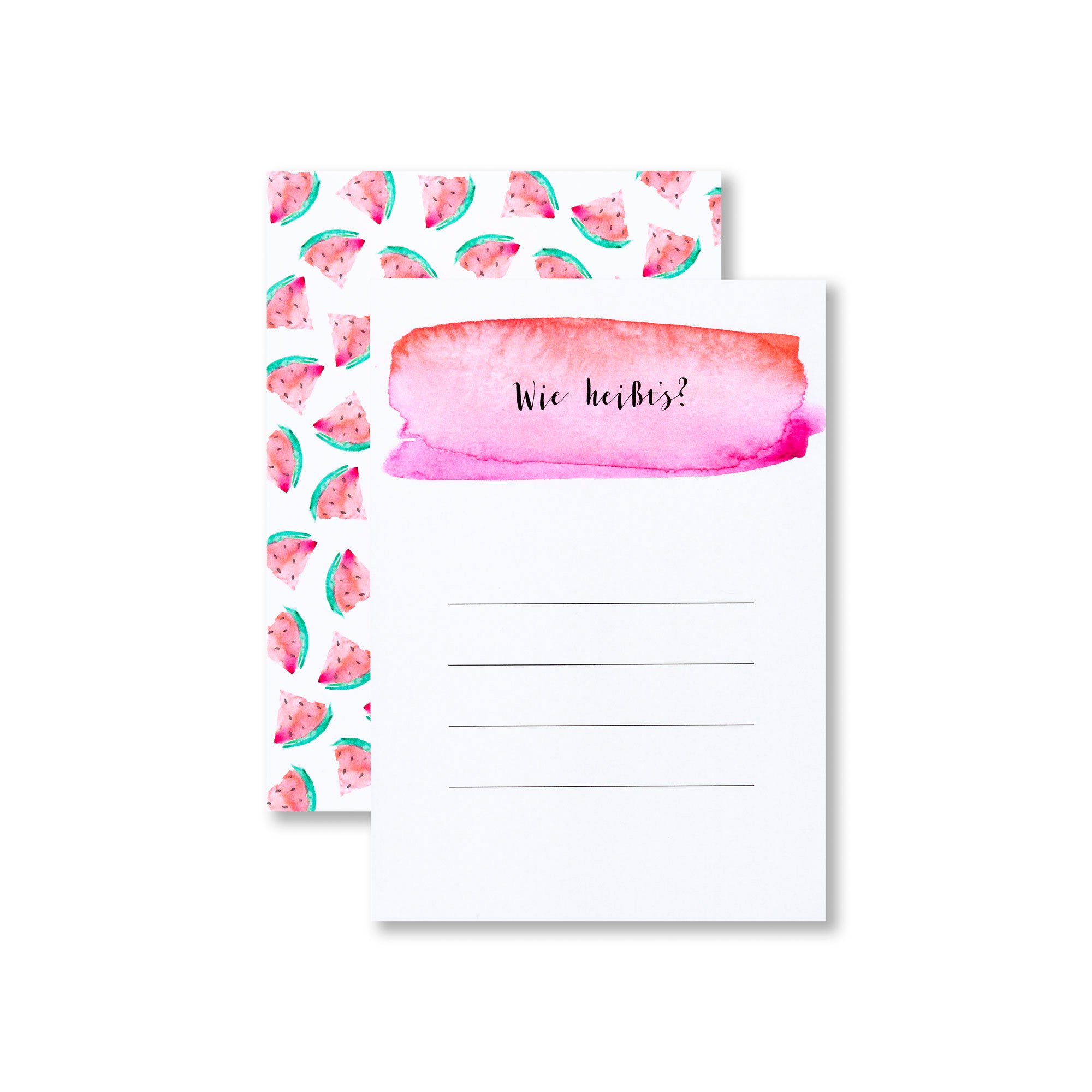 Auf unseren Wassermelonen Namenskarten können Eure Gäste ihre Lieblingsnamen für das kommende Baby vorschlagen. So könnt ihr Euch inspirieren lassen und vielleicht ist ja sogar der richtige Name dabei. Eine Menge Spaß und eine schöne Erinnerung ist es allemal!